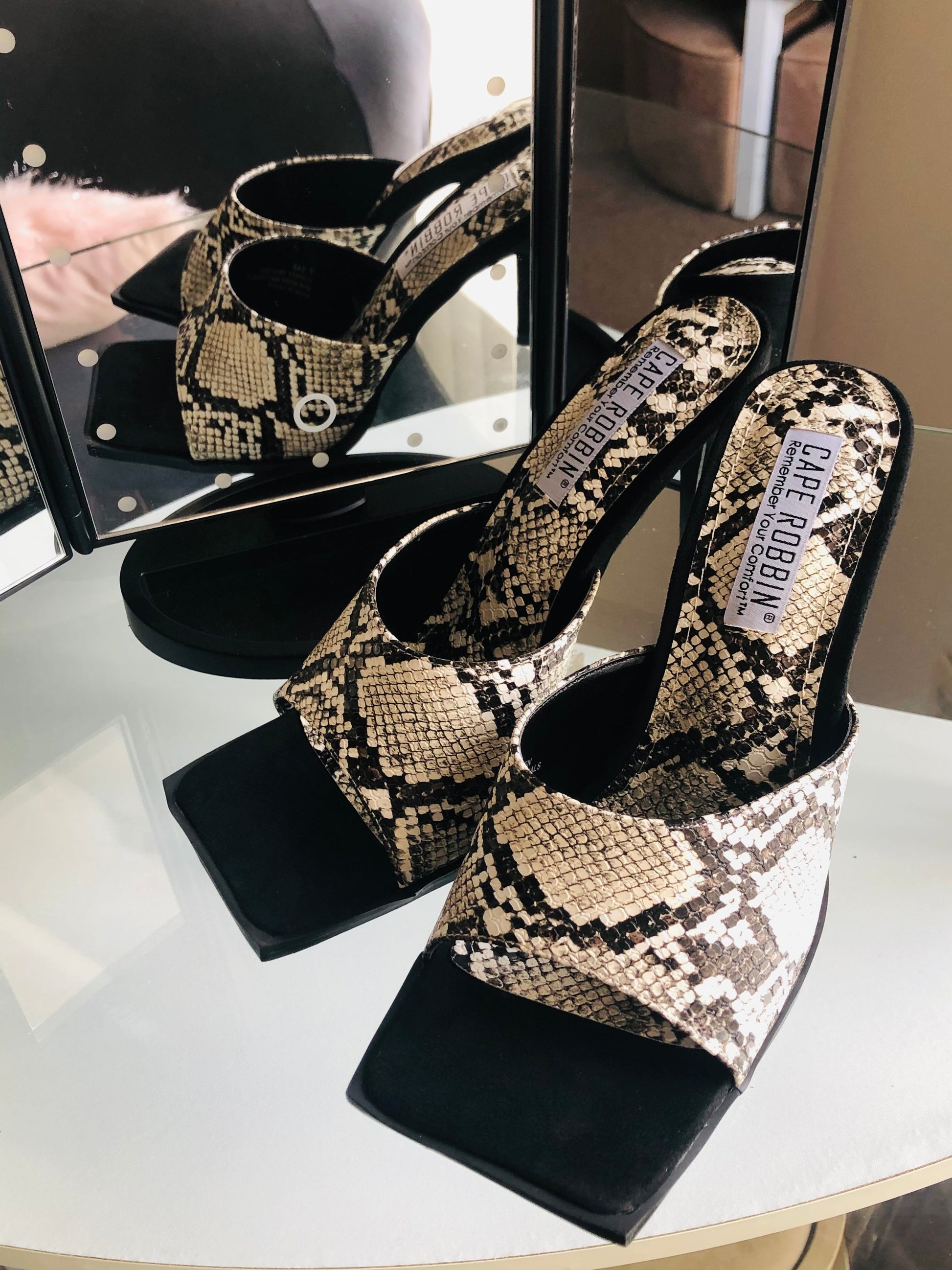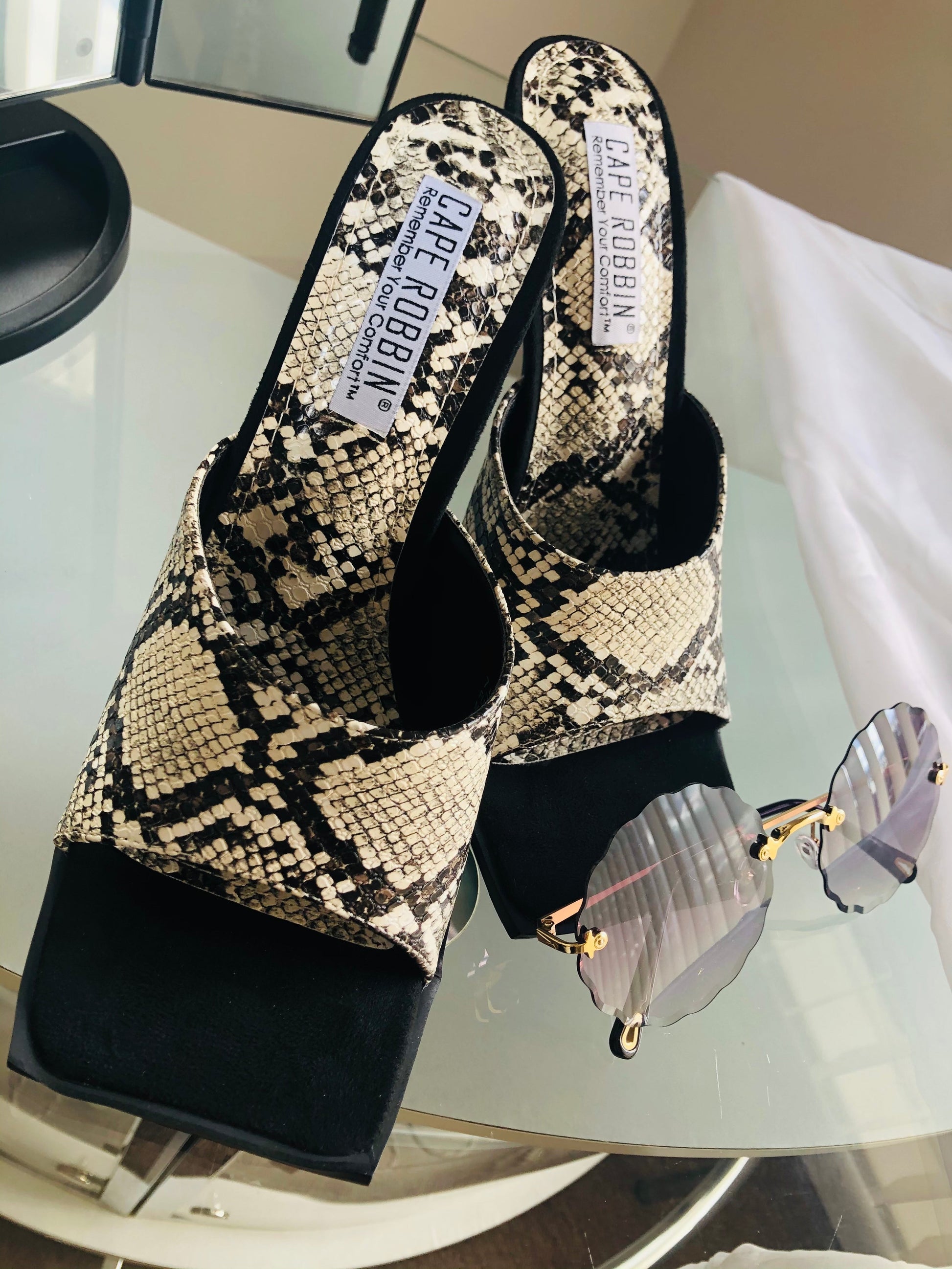 These Square Toe Snake Slip On Heel is the perfect show for any occasion.
