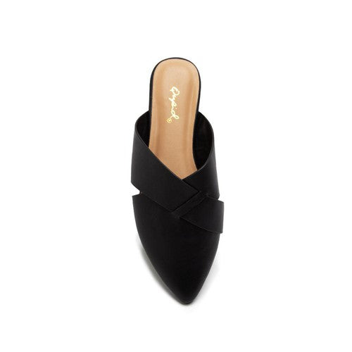 Black slip on low mules