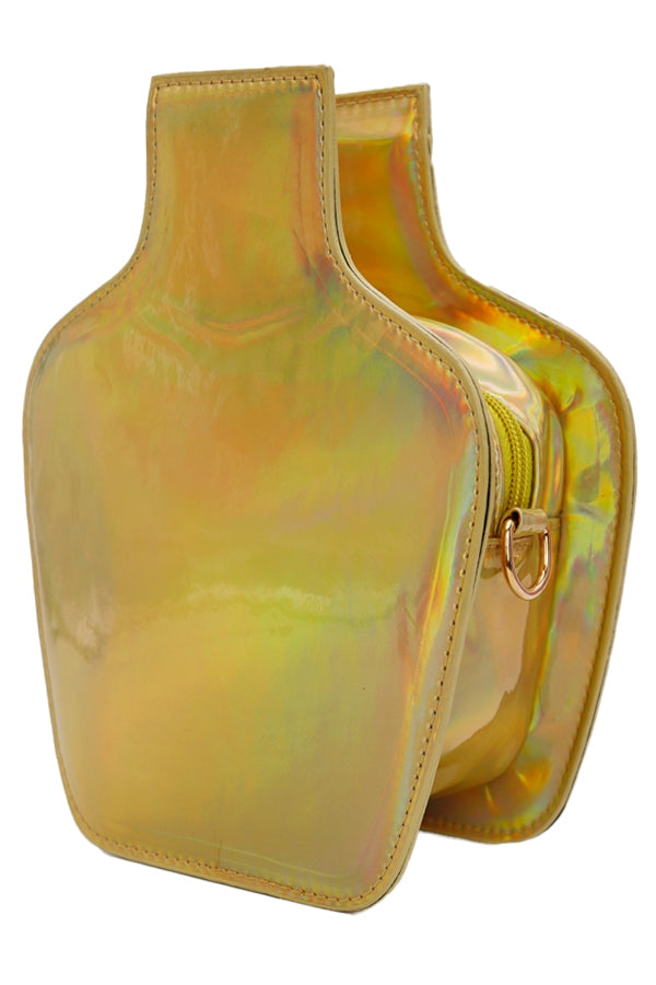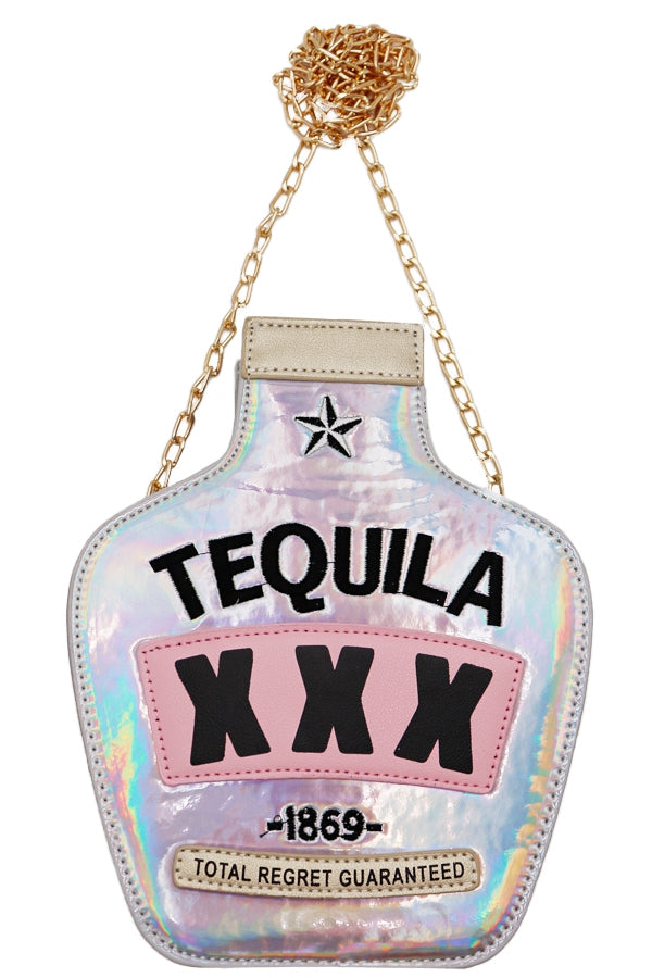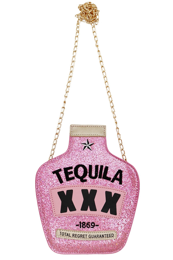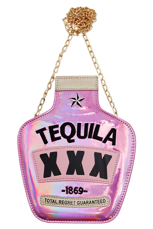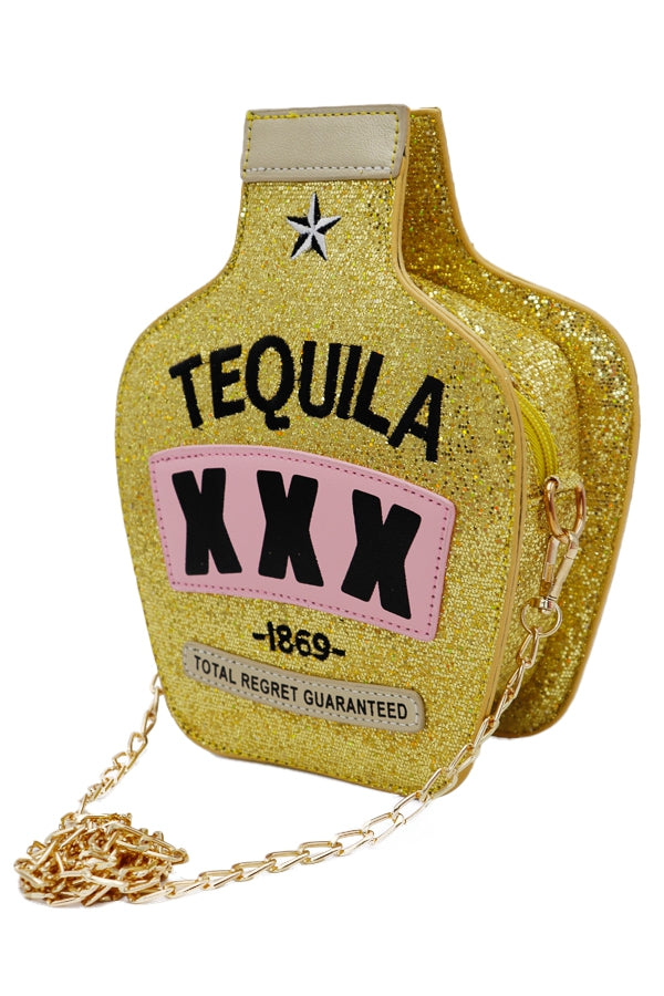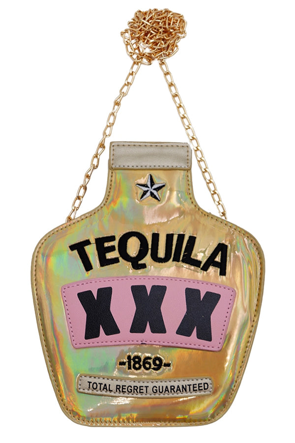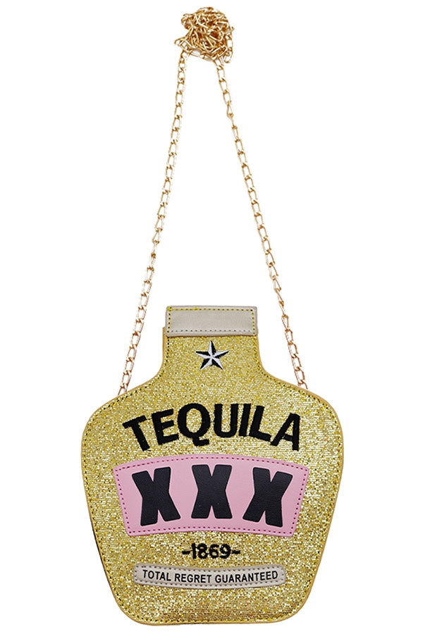 Chic tequila bottle bag , with gold chain detail.